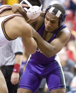 Redshirt sophomore Victor Carazo (Modesto, Calif./Modesto Junior College) won by fall over Eric Starks at 174 pounds. Carazo caught Starks on the edge of the mat and pinned him in 1:43.